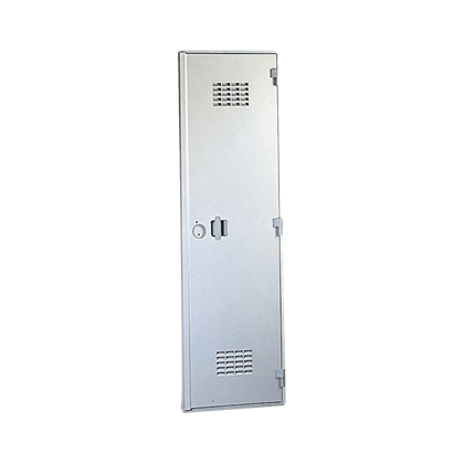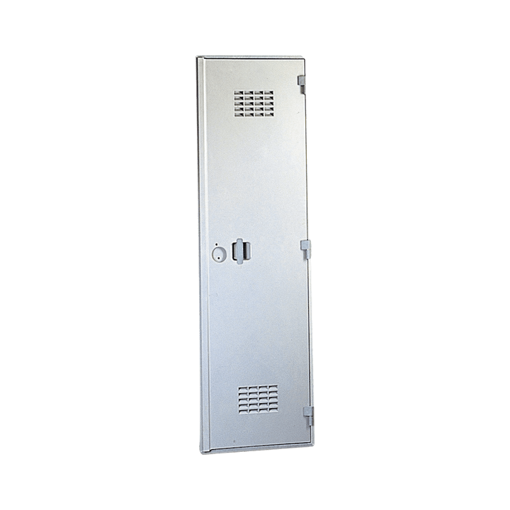 In vetroresina – colore grigio RAL 7040. Con serratura cifratura 640. Grado di protezione IP33 secondo CEI EN 60529, IK10 secondo CEI EN 62262. Conforme a specifica ENEL DS919.