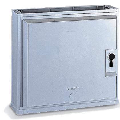 Materiali Stampati in SMC (vetroresina) – Colore grigio RAL 7040. Cerniere interne in resina termoplastica a base poliarillamidica rinforzata con fibra di vetro (IXEF). Parti metalliche esterne in acciaio inox o in acciaio tropicalizzato e verniciato grigio, elettricamente isolate con l’interno. Corpo serratura in vetroresina e integrato nello sportello. Maniglia in resina Poliammidica. Perno di manovra serratura in lega di alluminio. Aste e paletti interni in acciaio con trattamento Geomet 321. Caratteristiche Armadio conforme a norma CEI EN 62208. Tensione nominale di isolamento Ui 690V. Porta incernierata completa di chiusura tipo cremonese azionabile con maniglia a scomparsa e con chiusura in tre punti per garantire una perfetta aderenza dello sportello. Maniglia predisposta per cilindro a profilato DIN 18252 con chiave di sicurezza a cifratura unica (cod.21). Setto divisorio compreso di passacavi. Prese d’aria inferiori e sottotetto per ventilazione naturale interna. Parete di fondo dotata di inserti annegati di stampaggio in ottone per applicazione apparecchiature direttamente o attraverso piastra di fondo. Grado di protezione IP 44 secondo CEI EN 60529, IK 10 secondo CEI EN 62262. Esecuzioni WL – Senza serratura e predisposte esclusivamente per utilizzo di serrature serie SCS-SCM. Le dimensioni utili, riportate in tabella, indicano lo spazio massimo disponibile per equipaggiamenti nel rispetto delle caratteristiche certificate dalla norma CEI EN 62208 (spazio utile protetto).
