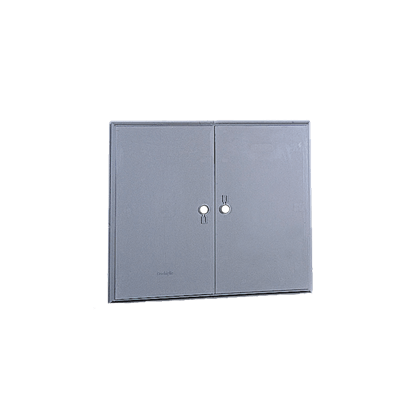 Materiali Porta e telaio stampati in SMC (vetroresina) – Colore grigio RAL 7040. Cerniere interne in lega di alluminio ruotanti su solette antibloccanti in materiale termoplastico. Caratteristiche Porta completa di serratura tipo cremonese agibile con chiave ad apertura superiore 90°. Labirinto di aerazione sul perimetro della porta. Completi di zanche in acciaio zincato e passivato a murare o tassellabile. A richiesta: in colore granito grigio chiaro – grigio scuro – rosa antico. Grado di protezione IP 43 secondo CEI EN 60529, IK 10 secondo CEI EN 62262. Esecuzioni WL = senza serratura. Predisposizione per applicazione serratura serie SCS86/…-SCM86/…da ordinarsi separatamente.