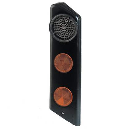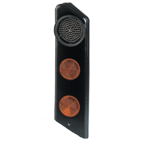 Materiali: Corpo testata realizzato in polietilene colore nero con cariche minerali ad alta densità e resistente agli UV. Schermo trasparente lampada in policarbonato resistente agli UV. Connettore multipolare stagno per collegamento al cavo di alimentazione. 3 Catadiottri tondi diametro 80 mm (due sul fronte, uno sul retro) colore arancio omologati secondo il codice della strada. Caratteristiche Classe di lampeggio secondo UNI EN 12352: 2006. Luce fissa L2H-P1-C Yellow 1-R0-A0-F1. O0-M3-T1-S0. Luce lampeggiante L2H-P1-C Yellow 1-R0-A0-F2-O1-M3-T1-S0. Apparato ottico Lampada a LED diametro 100 mm con 96 LED da 2 cd cadauno di color ambra 590 nm stretto di 30°. Luce interna realizzata con 24 LED, corona esterna realizzata con 72 LED. Sul retro della testata è previsto un idoneo sistema di regolazione orizzontale e verticale del fascio luminoso con angolazione +/- 5°. Certificato 1328-CPR-0532. Alimentazione A 48 Vac. Funzionamento mediante centralina CSE3/220/…; luce alternata interna/esterna; luce fissa; luce a frusta. Applicazioni Corsie stradali e autostradali. Rotonde, incroci, tratti pericolosi. Versioni • Sinistra a senso unico di marcia: 3 catadiottri tondi diametro 80 mm (2 sul fronte ed 1 sul retro) color arancio, secondo normativa stradale. • Destra a senso unico di marcia: 1 catadiottro anteriore rettangolare dimensioni 5x18 cm colore arancio secondo normativa stradale. • Destra a doppio senso di marcia: 2catadiottri (1 anteriore colore rosso e 1 posteriore colore bianco) rettangolari di dimensioni 5x18 cm, secondo normativa stradale. Esecuzioni • Per posa sul piano viabile stradale, sul lato sinistro o destro della carreggiata, a senso unico o doppio senso di marcia, con piede realizzato in polietilene ad alta densità colore bianco, munito di codolo per innesto a tubo quadro 45x45 mm infisso nel terreno. • Per posa su guard-rail, sicurvie e new jersey, con staffe metalliche in acciaio zincato e bulloneria di serraggio inox. • Adatto per essere collegato a sistemi di telegestione per funzionamento lampeggiante per segnalazioni di pericolo e continuo per la realizzazione di una guida luminosa antinebbia. Il segnalatore LSA25 può essere applicato su: • Piedistallo universale in materiale termoplastico per carreggiata destra o sinistra; • Staffa metallica in acciaio zincato per applicazione su securvia con attacco da 100 mm per carreggiata sinistra; • Staffa metallica in acciaio zincato per applicazione su palo diametro 40 mm per sicurvia bassa per carreggiata sinistra.