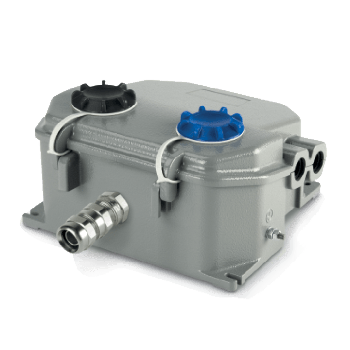 Scatola di derivazione con linea passante a perforazione d'isolante con pressacavo. Sezione cavi 6-35mm². 1 Fusibile 4A (L), pressacavo n. 2 M25 (11-16mm). Grado di isolamento: classe 2. Protezione tramite fusibile 2A D01 gG. Caratteristiche tecniche: - morsetti a perforazione d'isolante; - guarnizioni di tenuta base coperchio e cavi con grado IP66; - viti imperdibili in acciaio Inox M5 per fissaggio coperchio; - tappi imperdibili a tenuta stagna IP66 per controllo fusibili; - morsetto di terra esterno M5; - fusibili di protezione della linea.