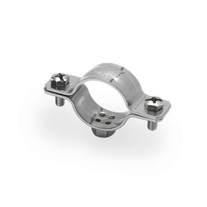 Collari fissatubo pesanti con dado di fissaggio. Prodotti da nastro di acciaio e successivamente zincati elettrolitici, viti di serraggio in acciaio zincato testa esagonale taglio combinato. Sono composti da un supporto sagomato la cui base presenta un dado filettato elettrosaldato; la parte superiore è costituita da una mezzaluna che, tramite il serraggio di due viti, blocca il tubo da sorreggere. I bordi privi di bave consentono l'installazione senza scalfire la superficie del tubo. Le buone caratteristiche meccaniche ne permettono l'impiego in situazioni gravose.
