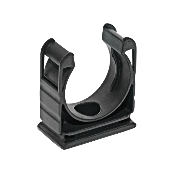 Elementi di fissaggio realizzati in poliammide rinforzato, colore nero. Sono caratterizzati da un’estrema facilità d’impiego in quanto l’ancoraggio avviene mediante un’unica vite centrale. Per l’installazione è sufficiente premere il tubo nell’alloggiamento fino al bloccaggio. Il coperchietto cod.5046 richiuso a scatto, impedisce qualsiasi movimento del tubo. E’ possibile disporre i fissatubo in batteria mediante l’elemento di connessione cod.5047. Articolo fornito completo di coperchietto.