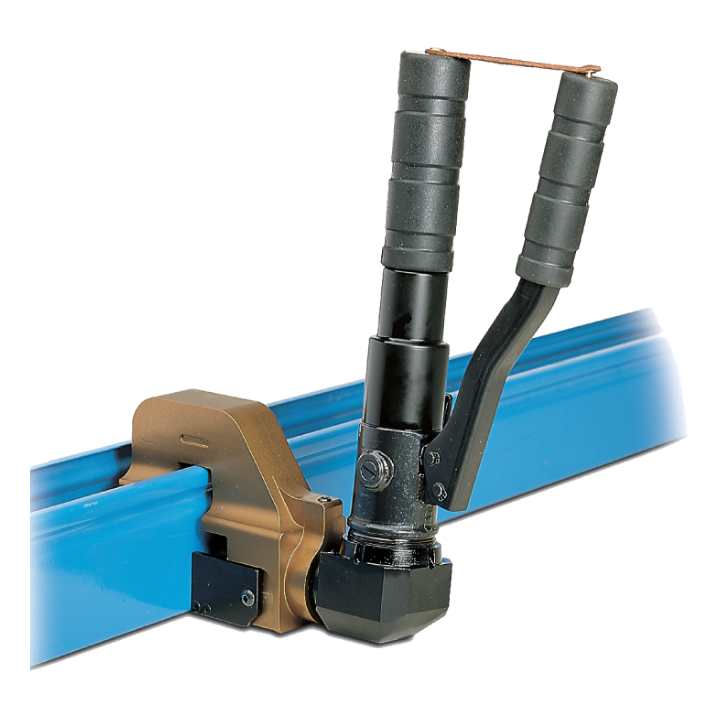 Duct piercer. Hydraulic hand tool designed to punch cable ducts in metal or plastic materials, without pre-hole. The rotating motion of the punch head makes it possible to pierce already-installed ducts just 16 cm from the wall. Equipped with a pressure-relief valve to safeguard the equipment against improper use. The materials utilized in the construction of the head keeps the total weight of the tool to just 3 kg. It comes in its own case, equipped with 16,2, 20,4, 25,5 and 32,5 mm Ø punches; a 40,5mm Ø bit is available on request. Max thickness: 1 mm (stainless steel) 1,2 mm (Fe 370)