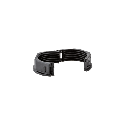 Ghiere per tubi con taglio longitudinale. Sono accessori speciali realizzati in poliammide PA 6 modificato, composti da due parti richiudibili per l’impiego con i tubi dotati di apertura longitudinale, per l’installazione del sistema di protezione su impianti già cablati. Le filettature proposte sono Metrico ISO in conformità alle norme CEI EN 60423. Colore nero.