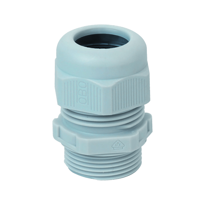 Pressacavi IP68 prodotti in poliammide, colore grigio RAL7011. Sono costituiti da un corpo provvisto di lamelle elastiche che, sotto l'azione di un dado di serraggio, si chiudono concentricamente agendo in modo uniforme sul gommino di tenuta in NBR, garantendo una tenuta stagna IP68 ed un'efficace tenuta allo strappo. La particolare forma trapezoidale della filettatura, assicura un' efficace tenuta contro lo svitamento accidentale causato dalle vibrazioni. Le guarnizioni sono resistenti all’invecchiamento, alla corrosione, agli oli e sono inerti nei confronti dei materiali che rivestono i cavi. Filettatura PG secondo DIN40430.