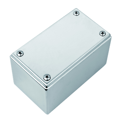 Scatole di derivazione IP66 prodotte in acciaio inox AISI 304 (X5CrNi1810 1.4301 UNI EN 10088-1) finemente satinato, di robusta costruzione, ricavate da un unico foglio di lamiera di acciaio inox spessore 1,2 mm, tranciata, stampata e saldata in atmosfera inerte per evitare fenomeni di corrosione. La guarnizione in gomma neoprenica espansa, antiolio e autoestinguente, già alloggiata nel coperchio, garantisce la tenuta stagna IP66. Sono complete di viti antiperdenti per il fissaggio del coperchio e predisposte per la messa a terra come da normative vigenti. Sul fondo della scatola sono applicati prigionieri M6 inox per il fissaggio di profili portanti o delle piastre di fondo (eccetto cod.6410E01 e cod.6411E01). I kit per il fissaggio a parete cod.6412F sono da richiedere separatamente e sono facilmente applicati praticando un foro Ø8mm sul fondo della scatola; il grado IP è garantito dalle guarnizioni di tenuta incluse nel kit. Su richiesta si producono in acciaio inox AISI 316 (X5CrNiMo17-12-2 1.4401 UNI EN 10088-1).