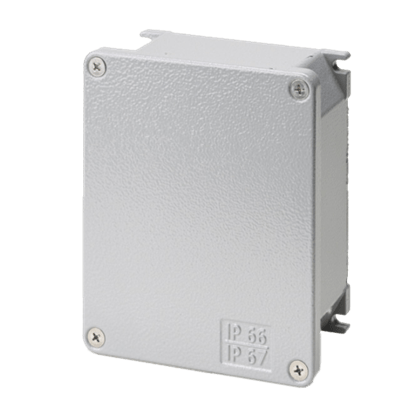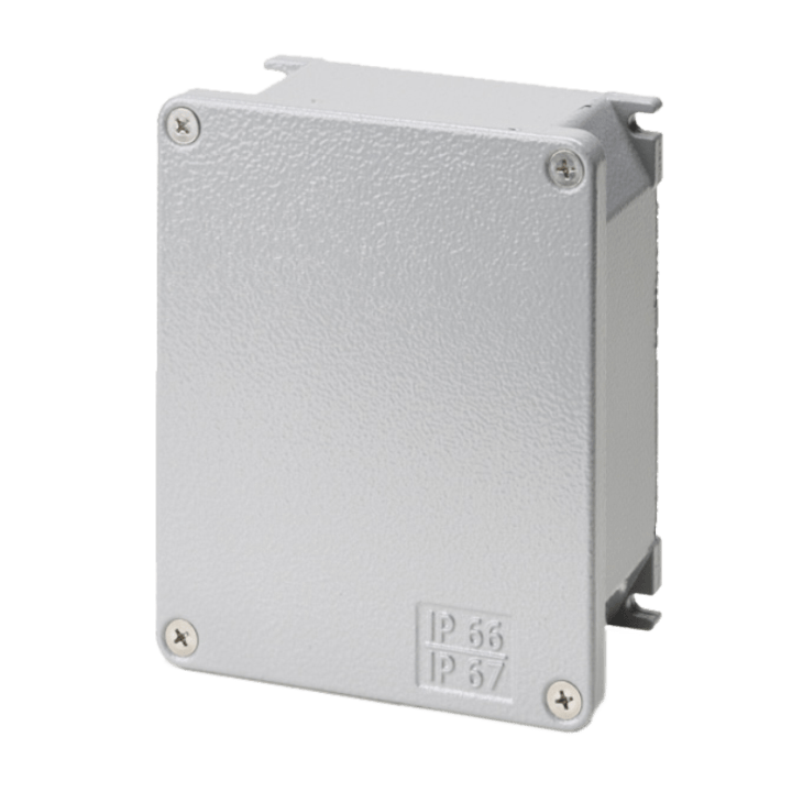 Scatole di derivazione realizzate in lega di alluminio EN AB 46100 (ex. UNI 5076) secondo norme UNI EN 1676, verniciate a forno con resine epossidiche. Colore grigio RAL7040 bucciato. Sono fornite con pareti chiuse e coperchio avvolgente, la guarnizione in espanso poliuretanico già alloggiata nella sede del coperchio, ne assicura la tenuta stagna. Complete di viti in acciaio inox AISI 304 per il fissaggio del coperchio e di n.1 kit di messa a terra cod 66950074A, le scatole sono predisposte con i masselli per messa a terra e per l’applicazione di piastre, supporti ed accessori. Il fissaggio a parete avviene mediante le staffe esterne incorporate nella base. Ogni scatola è confezionata singolarmente. I kit per i fissaggi interni sono disponibili a richiesta. Si realizzano forature ed equipaggiamenti su specifica del cliente. NOTA: per applicazioni particolari è necessario specificare l’impiego in fase d’ordine.