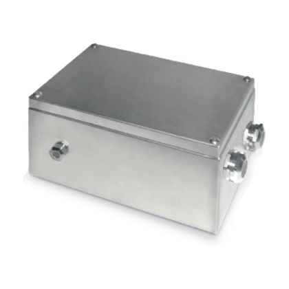 Scatola in acciaio inox AISI 304- cavi multipolari. Sezione cavi 4x10 - 4x16 mm². Morsettiera 6x16 mm². Pressacavi in linea n.2 M40 (15÷27mm). Pressacavi derivazione n.1 M25 (11÷16mm). Dimensioni 210x190x125. Protezione tramite fusibile 2A D01 gG. Caratteristiche tecniche: - morsetti a perforazione d'isolante; - guarnizioni di tenuta base coperchio e cavi con grado IP66; - viti imperdibili in acciaio Inox M5 per fissaggio coperchio; - tappi imperdibili a tenuta stagna IP66 per controllo fusibili; - morsetto di terra esterno M5; - fusibili di protezione della linea.