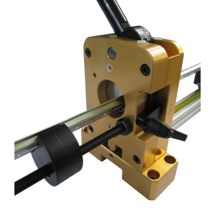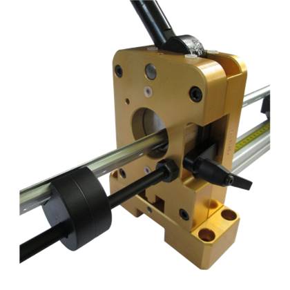 Din cutter with double blade omega profile bar holder and guide. is supplied complete with double blade pair Omega profile (Omega high and Omega reduced), guide bracket to improve the orthogonality of cut and standard bar holder 1000 mm long, with the possibility of using 600 mm extension kit.