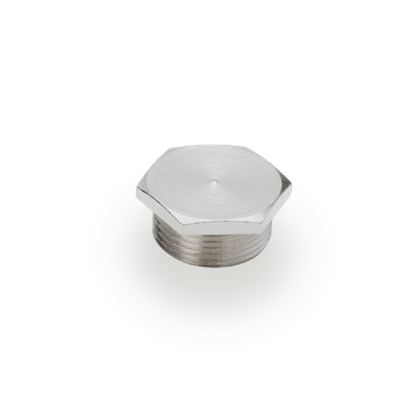 Tappo in ottone nichelato filettato esternamente, utilizzato per la chiusura di fori filettati non utilizzati. La filettatura è metrica ISO in conformità con le norme CEI EN 60423.