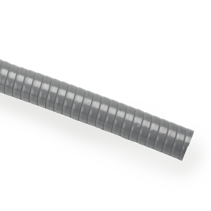 Tubi flessibili in PVC spiralato pesante, colore grigio RAL7001. Sono prodotti in PVC plastificato ad alto spessore, rinforzato con spirale in PVC rigido antiurto. Resistenti ai più comuni oli, grassi ed acidi diluiti, presentano buona resistenza meccanica ed all'invecchiamento. Superfici interne ed esterne lisce.