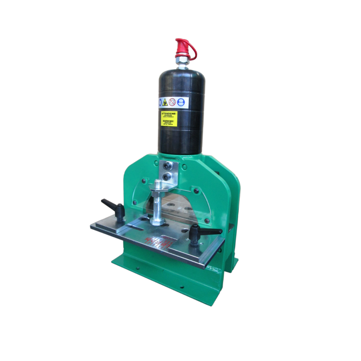 The Cosmec Bar Cutter is a tool cuts 120x12 mm copper and aluminium bars. The bars are cold cut very rapidly without causing deformation on the bar. To operate the tool, all the Cosmec operating hydraulic machines, as pump with pedal Code art. 00PA2002, the pneumhydrtaulic one code art. 00PA2004 or the electrical power pack code art. 00HP1550. It is not necessary to fix the tool during the cutting operation; however, it is possible to anchor the equipment to a work bench by fixing the feet with the use of 4 screws M8. The accessory code 009018K bracket kit and bar centre makes it very easy centering operations and ensures the orthogonality of the cut thanks to two retainer surfaces and the retainer bar adjustable in width and thickness of bar. The accessory code 009018K can be buy separately and installed on exsisting equipments. Max working pressure 70Mpa Developed power 230kN