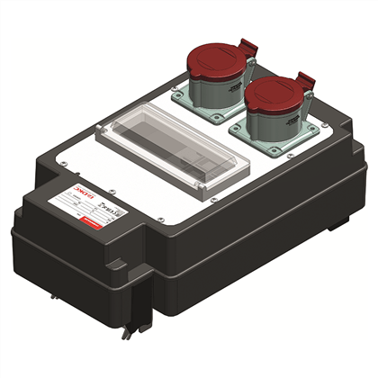 Cassetta plastica a pinza 32A predisposta per MCB 8 mod con 2 prese industriali 16A (3P+N)