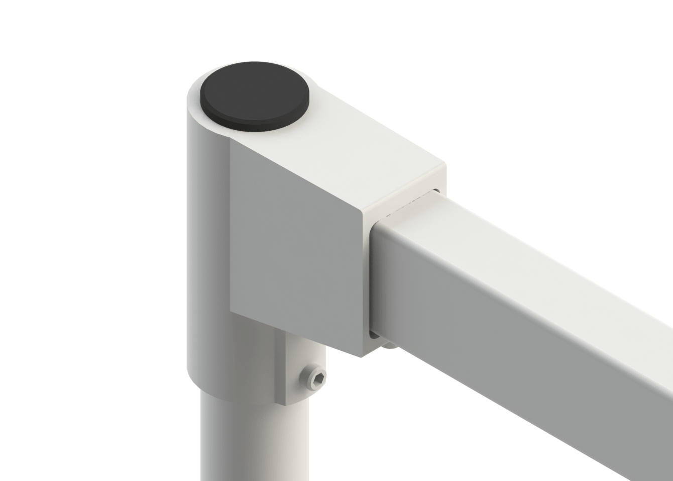 Adattatore angolare 90° utilizzato per collegare l'elemento orizzontale con quello verticale del sistema braccio. Da utilizzare in abbinamento ai tubi quadrati 50x50 mm. Realizzato in lega di alluminio, colore RAL 7035. Incluse viti di fissaggio e guarnizioni.