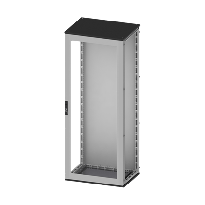 Armadi componibili CQE con porta trasparente, grado di protezione armadio completo IP 55. La struttura dell'armadio CQE è costituita da profili in lamiera d'acciaio zincato sp. 15/10 con profilo chiuso a formare un telaio portante. I bordi, ripiegati 8 volte, impediscono l'entrata di acqua e concorrono alla determinazione del grado di protezione. Rapido e facile montaggio degli accessori. Sul fondo dell'armadio è praticata un'apertura ampiamente dimensionata, la cui chiusura è assicurata da tre flange asportabili ed intercambiabili. La porta è costruita in lamiera d'acciaio. Internamente è fissato un telaio forato con passo 25 mm facilmente asportabile. Tale telaio, oltre ad irrobustire la porta, consente un facile ancoraggio per ogni tipo di applicazione. Grado di resistenza all'urto secondo IEC EN 62208; EN50102: IK09