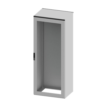 Armadio monoblocco CAE con porta trasparente. Struttura chiusa lateralmente e superiormente in lamiera d’acciaio sp. 15/10 verniciata RAL 7035 epossipoliestere bucciato e fondo con ingresso cavi regolabile. Il retro è in lamiera d’acciaio sp. 15/10 verniciato RAL 7035 bucciato con bordi raggiati antinfortunistici. Da 4 a 10 punti di fissaggio al telaio. La porta é in lamiera d’acciaio sp. 20/10 verniciata RAL 7035 bucciato, con bordi raggiati antinfortunistici. 4 punti di chiusura, 4 cerniere e mostrina con inserto di chiusura tipo aletta doppio pettine Ø3 mm. Vetro di sicurezza sp. 40/10. Grado di resistenza all'urto secondo IEC EN 62208: IK09. Grado di protezione IP55.