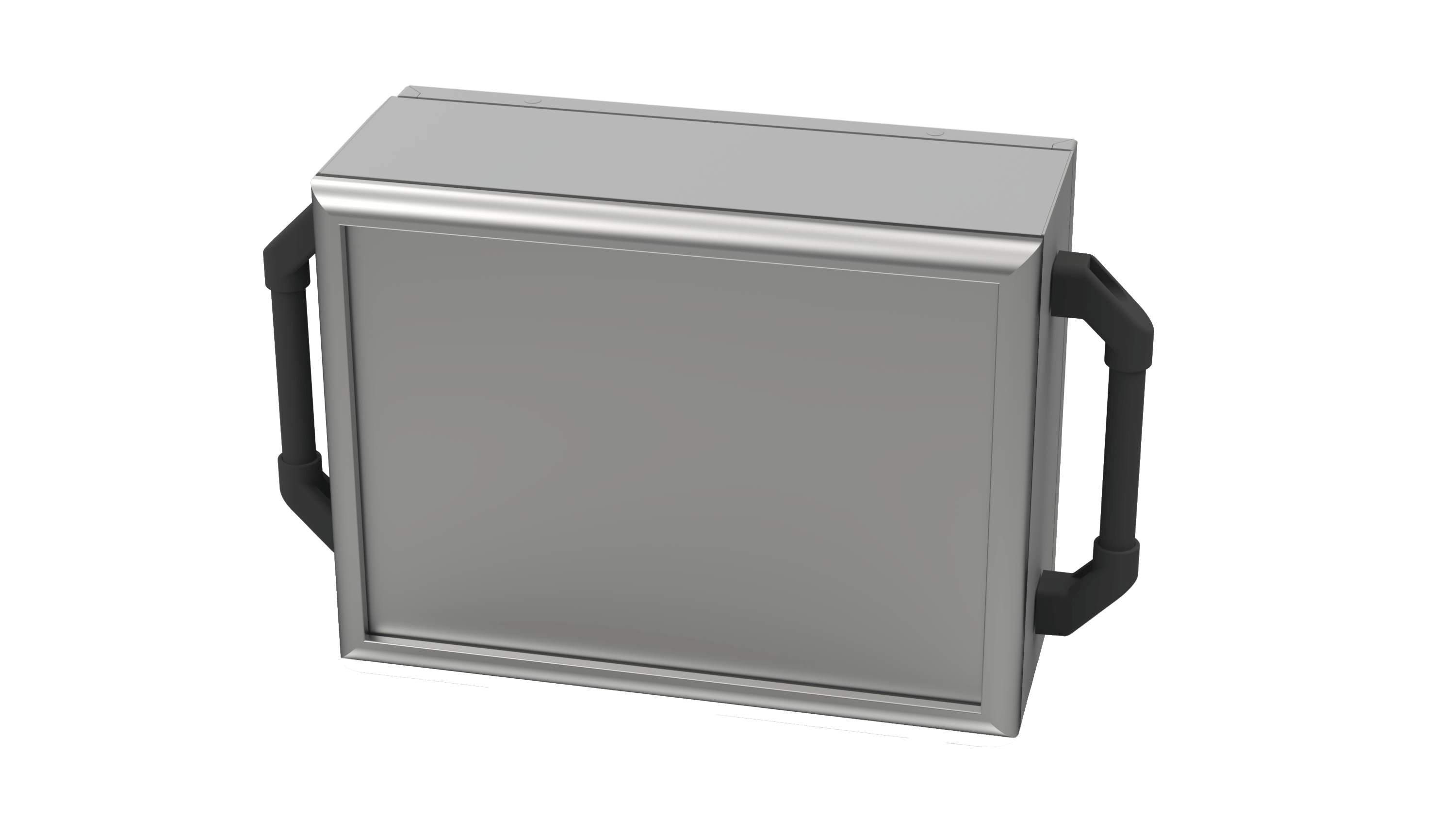 Contenitori di comando per il completamento dei sistemi a braccio portante DKC. In lamiera d'acciaio con pannello frontale removibile in allumino, sulla parte posteriore porta apribile a 130°. possibilità di inserire piastra di cablaggio RZPCE tramite le squadrette regolabili RZCBPCE01. Maniglie incluse.