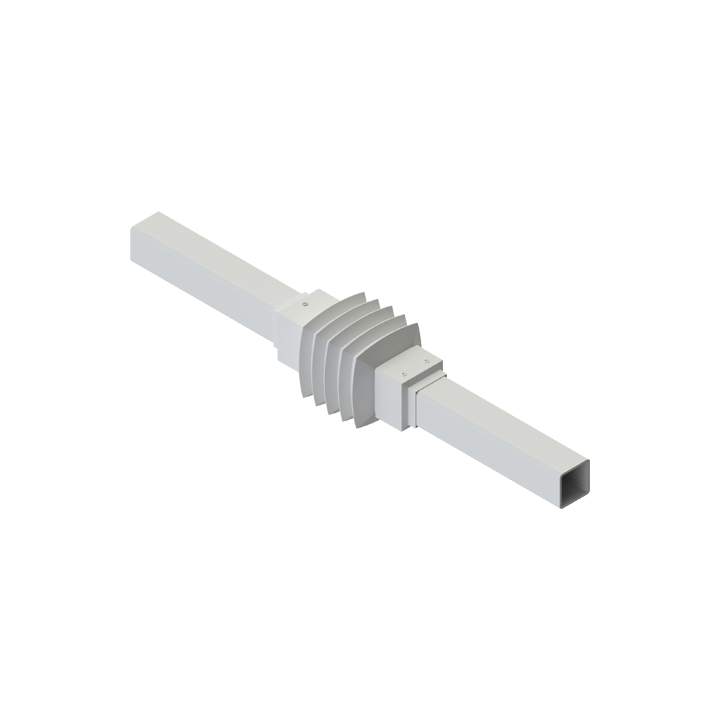 Il giunto intermedio permette di accoppiare più elementi orizzontali del sistema braccio, consentendone la rotazione. Da utilizzare in abbinamento ai tubi quadrati 80x80 mm. Realizzato in lega di alluminio, colore RAL 7035. Il soffietto è realizzato in plastica, colore RAL 9005. Incluse viti di fissaggio e guarnizioni.