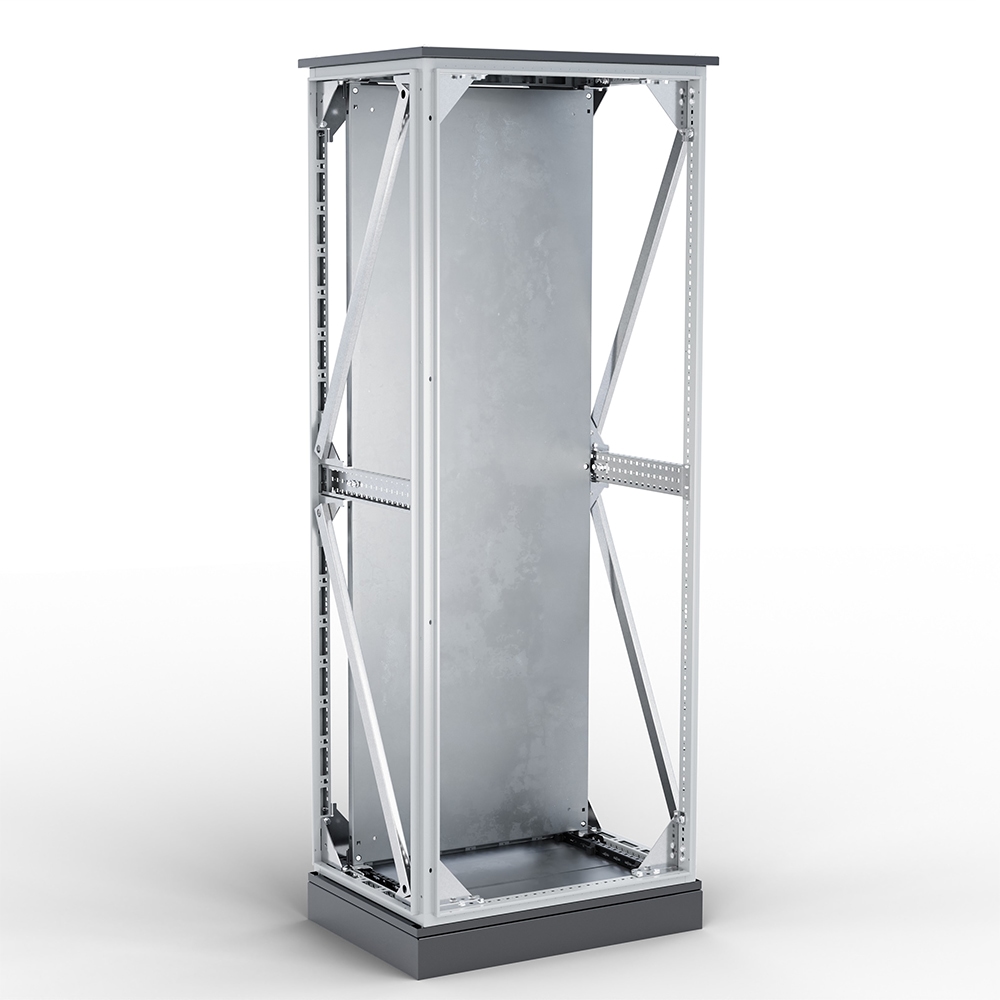 Kit antisismico strong aggiuntivo per armadio modulare CQE. Confezione completa di zoccolo rigido in lamiera d’acciaio pressopiegata sp. 3,0 mm con possibilità di fissaggio al pavimento, staffe supplementari per il fissaggio del pannello di cablaggio, traverse centrali H. 75 mm, squadrette angolari di irrigidimento superiori e inferiori, tiranti laterali di irrigidimento con squadrette centrali, maniglia con serratura a chiave cifrata, perni per cerniera con seeger. H. 2000 L.800 P.800 Carico Piastra: ≤ 500 Kg