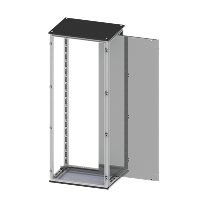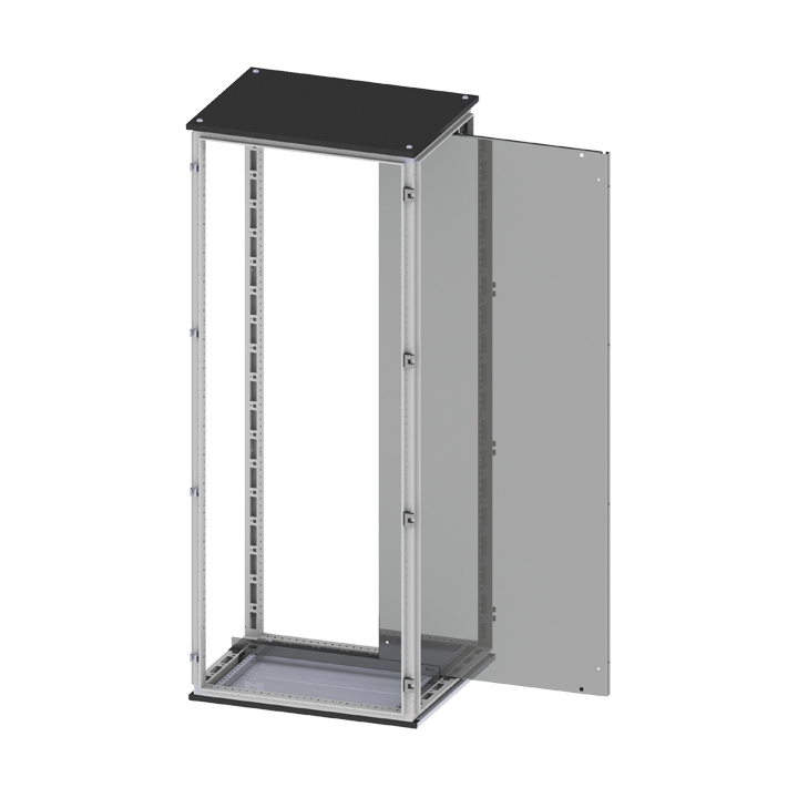 Pannello di cablaggio a inserimento laterale per CQE, realizzato in lamiera d'acciaio zincata Sendzimir sp. 25/10 oppure 30/10 (in relazione alla dimensione). Passo di fissaggio alla struttura pari a 25 mm. Guide di fissaggio incluse nella fornitura. Distanza massima pannello di cablaggio porta pari a P - 105.