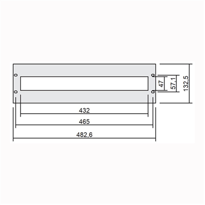 Pannello di chiusura frontale da 19" forato con cava DIN. Realizzato in lamiera d’acciaio sp. 15/10 verniciato RAL 7035 bucciato. Nella cava possono essere montati fino a 24 moduli DIN di altezza pari a 3 unità. Confezione da 1 pezzo completa di viteria per il montaggio e guida DIN.