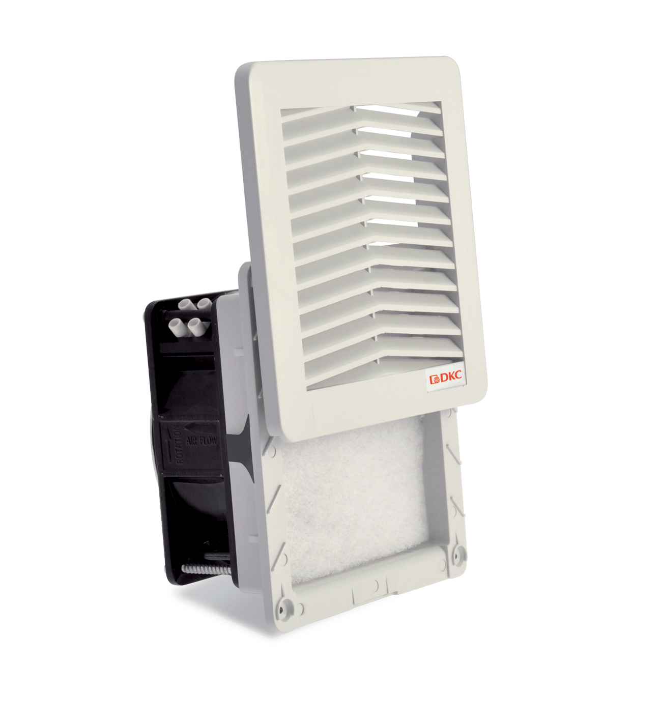 Ventilatore con filtro. Materiale: PC/ABS resistente ai raggi UV. Colore standard: RAL 7035. UL TYPE 12. Grado di protezione IP54 secondo EN 60529 standard. Sistema di fissaggio con clip elastiche, oppure con 4 viti autofilettanti. Range di fissaggio spessore da 1 a 2,2 mm. Temperatura di stoccaggio da -40°C a +70°C. Protezione del motore: impedenza. Connessione di terra con morsettiera polo PE. Elemento filtrante: fibre sintetiche termo legate alla struttura progressiva. Classe di filtraggio G3 secondo EN 779. Grado di separazione: 85% - Filtro lavabile circa 10 volte.